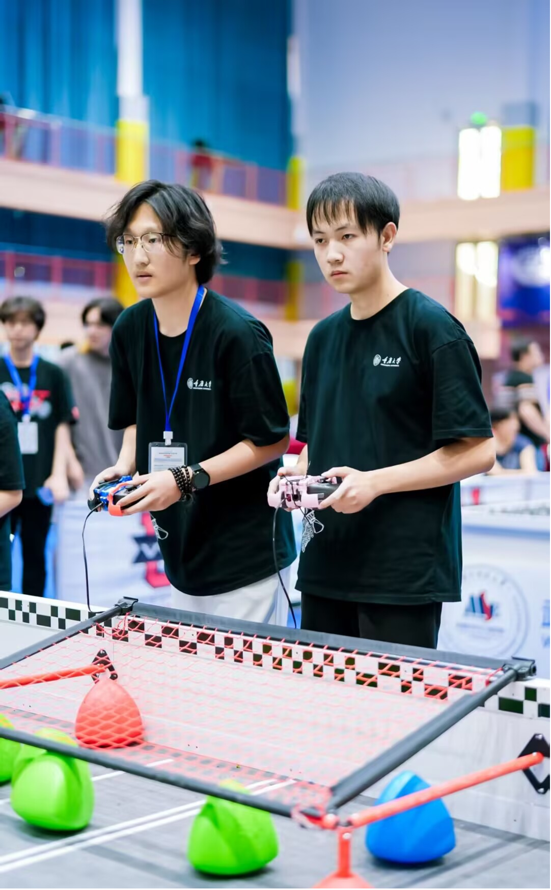 与年级,形成“学科交叉+协同创新”的独特优势。备赛期间,面对结构设计、算法优化、策略制定等技术难题,队员们分工明确、紧密配合,战队队长的郝煜东在其中发挥了关键作用。