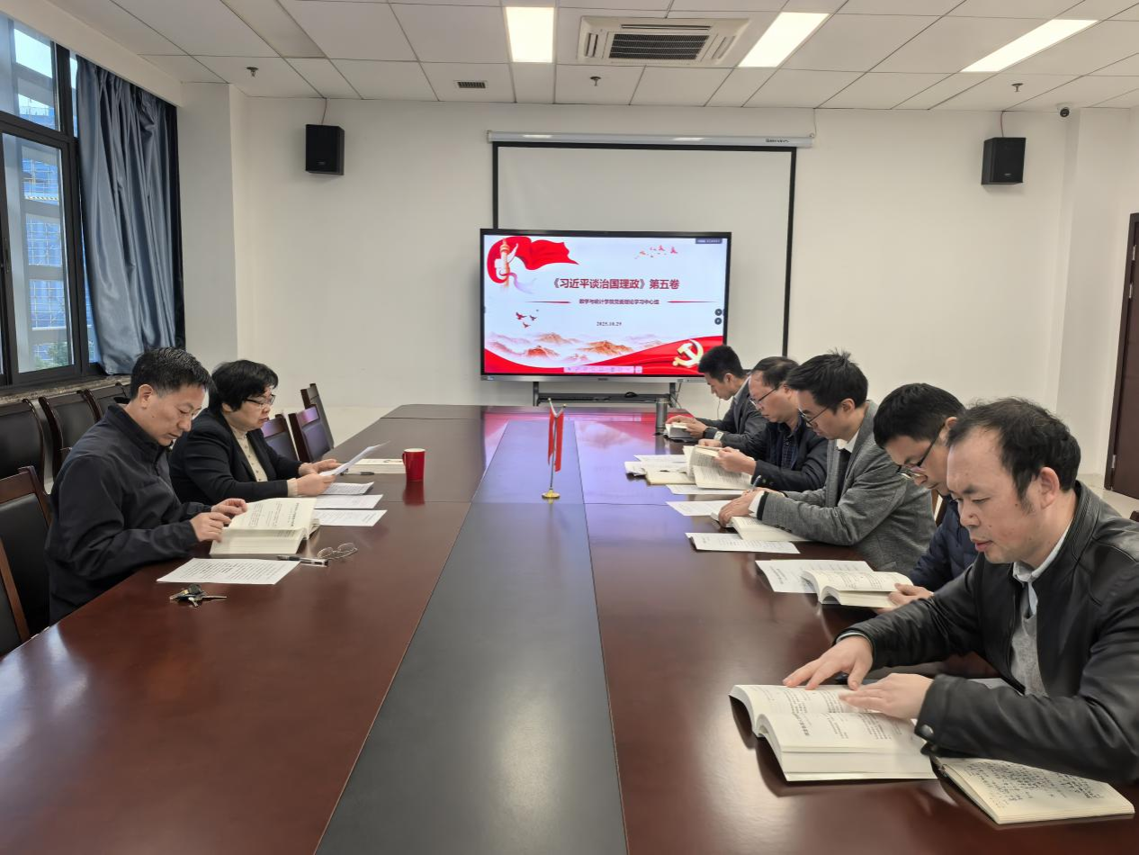 刘卫红指出,《习近平谈治国理政》第五卷生动记录了面对严峻复杂的国际环境和艰巨繁重的国内改革发展稳定任务,以习近平同志为核心的党中央统筹国内国际两个大局,完整准确全面贯彻新发展理念,着力推动高质量发展,谋划和推动进一步全面深化改革,推进高水平对外开放,攻坚克难、砥砺奋进,推动全面建设社会主义现代化国家迈出坚实步伐的生动实践,是全面系统反映习近平新时代中国特色社会主义思想最新成果。全体成员要深刻认识学习领会《习近平谈治国理政》第五卷的重大意义,加强学习,切实做到学思用贯通、知信行统一。要紧紧围绕一流数学与统计学科建设这个中心任务,科学总结“十四五”规划实施情况,认真谋划“十五五”发展思路,对标教育强国建设目标任务,推动“一院一策”改革,把学习成果转化为干事创业、推动高质量发展的实际成效。