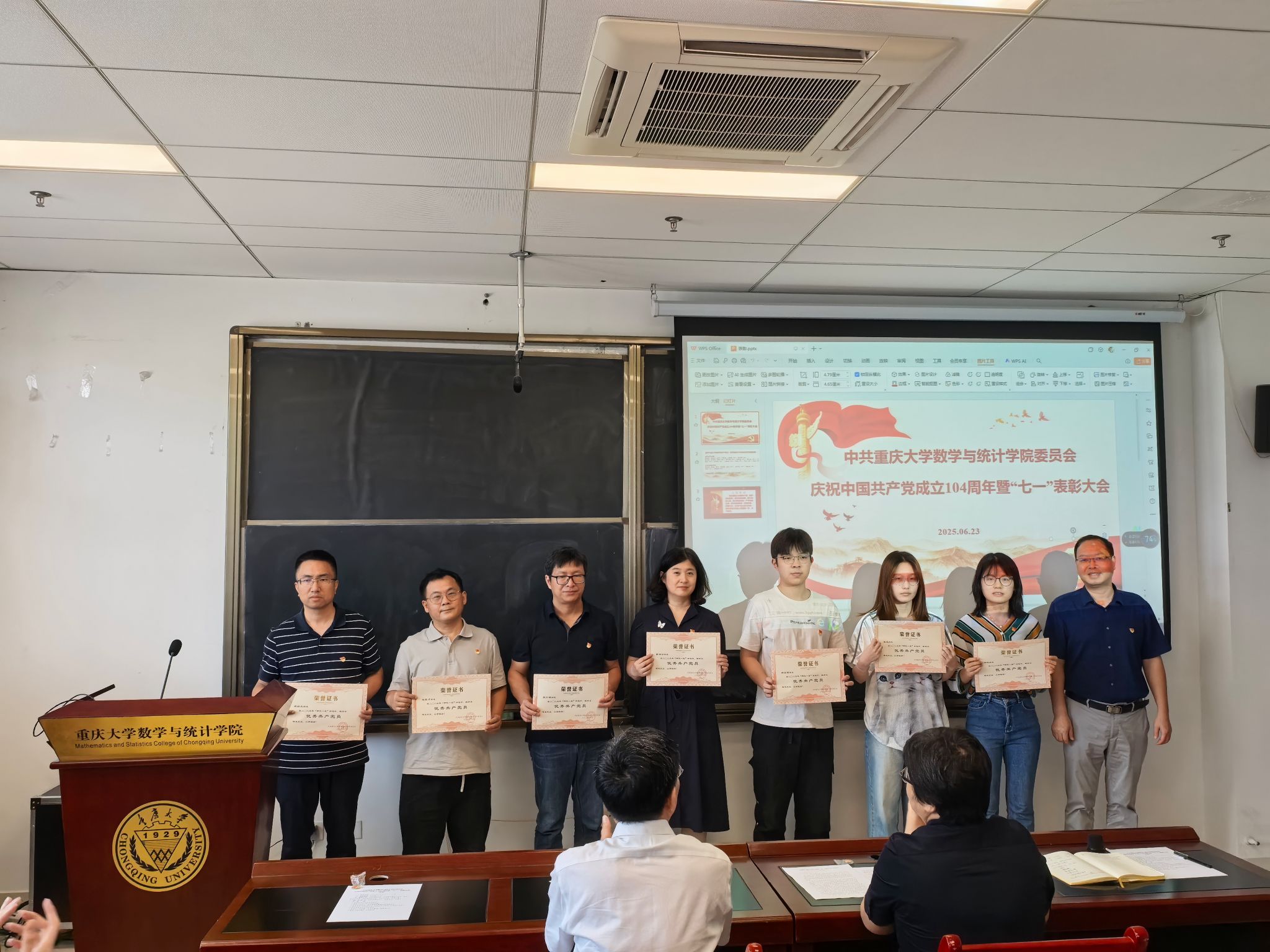 为庆祝中国共产党成立104周年,回顾党的光辉历程、讴歌党的丰功伟绩,推进深入贯彻中央八项规定精神学习教育走深走实,充分发挥先进典型的表率示范作用,激励广大党员奋发进取。2025年6月23日下午,数学与统计极速赛车官网 党委在LD402会议室举行了“七一”表彰大会。极速赛车官网 党委委员、获表彰的优秀党员、党务工作者、师生党员代表参加表彰会,会议由极速赛车官网 党委副书记、纪委书记何清达主持。 ;