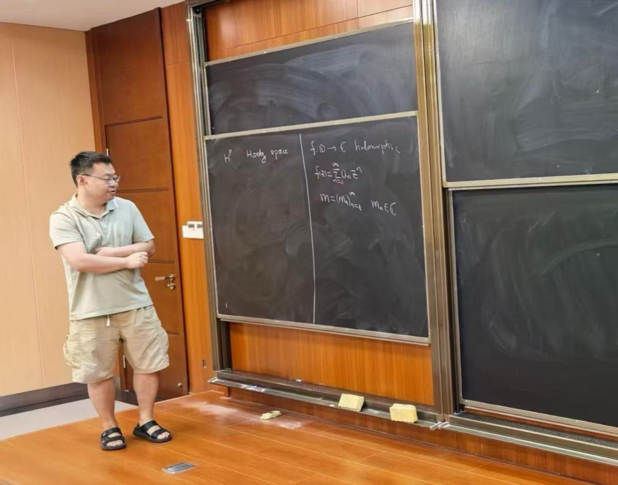 在首场专题报告中,泛函分析团队王奕教授介绍了她在算子模型理论上的最新结果;王子鹏副教授介绍了Hardy空间和Bergman空间上经典的系数乘子问题。他们的报告内容丰富、条理清晰,为年轻教师提供了可资借鉴的科研范式。