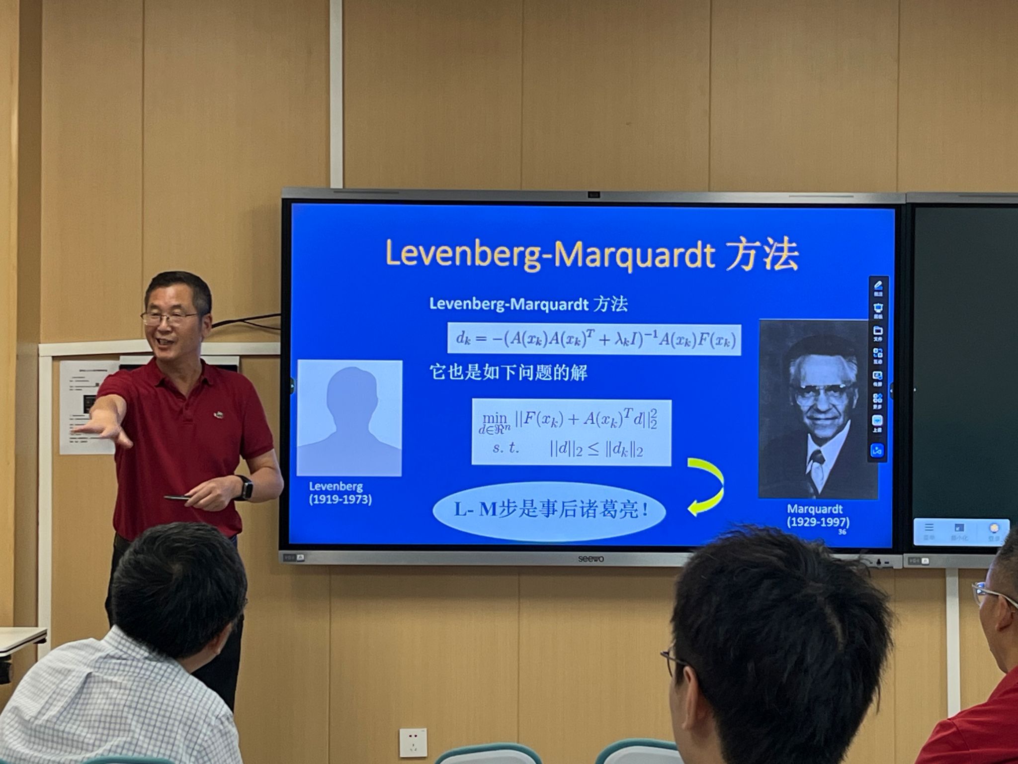 袁亚湘院士以“计算:第三种科学方法”为题,系统回顾了计算手段的历史演进,生动地阐述了自人类以手指计数起,计算工具从算盘、机械计算机到今日的超级计算机的发展历程。随后,他依次梳理了牛顿迭代法、随机梯度法等关键算法的发展脉络,强调了计算的重要性。袁亚湘院士总结认为,计算已与理论推演、实验验证并列,成为科学研究的“第三种方法”,并将在复杂系统模拟、大数据分析等领域继续发挥重要的作用。