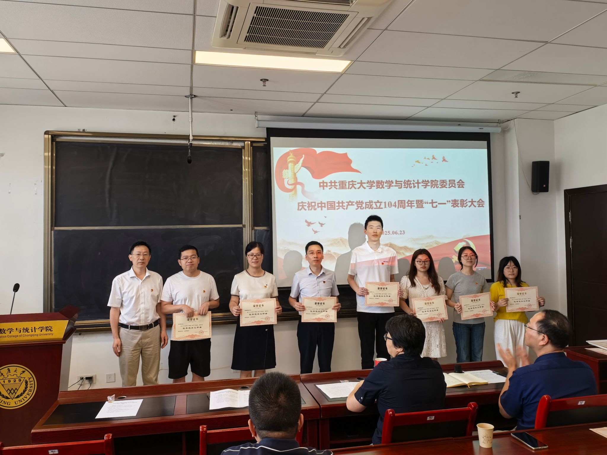 为庆祝中国共产党成立104周年,回顾党的光辉历程、讴歌党的丰功伟绩,推进深入贯彻中央八项规定精神学习教育走深走实,充分发挥先进典型的表率示范作用,激励广大党员奋发进取。2025年6月23日下午,数学与统计极速赛车官网 党委在LD402会议室举行了“七一”表彰大会。极速赛车官网 党委委员、获表彰的优秀党员、党务工作者、师生党员代表参加表彰会,会议由极速赛车官网 党委副书记、纪委书记何清达主持。 ;