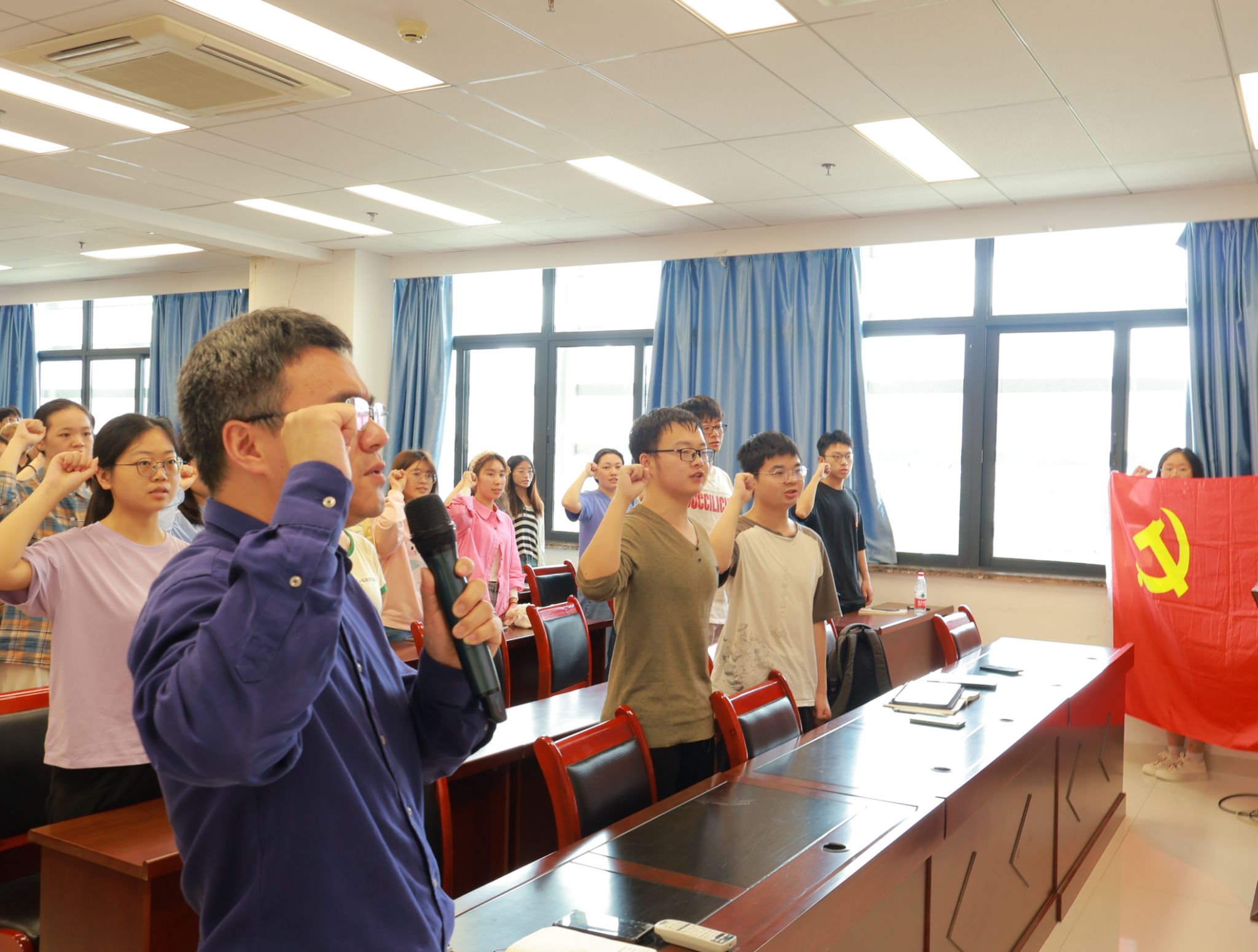 首先,何建华书记带领全体毕业生党员宣誓,共同重温入党誓词。